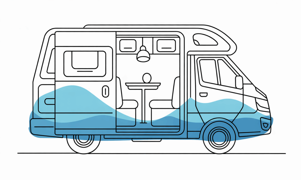 Ein komfortabel ausgestatteter Mercedes Sprinter mit Heizung, Küche, Bad und gemütlicher Atmosphäre bietet maßgeschneiderte Sessions für ein bis zwei Personen.